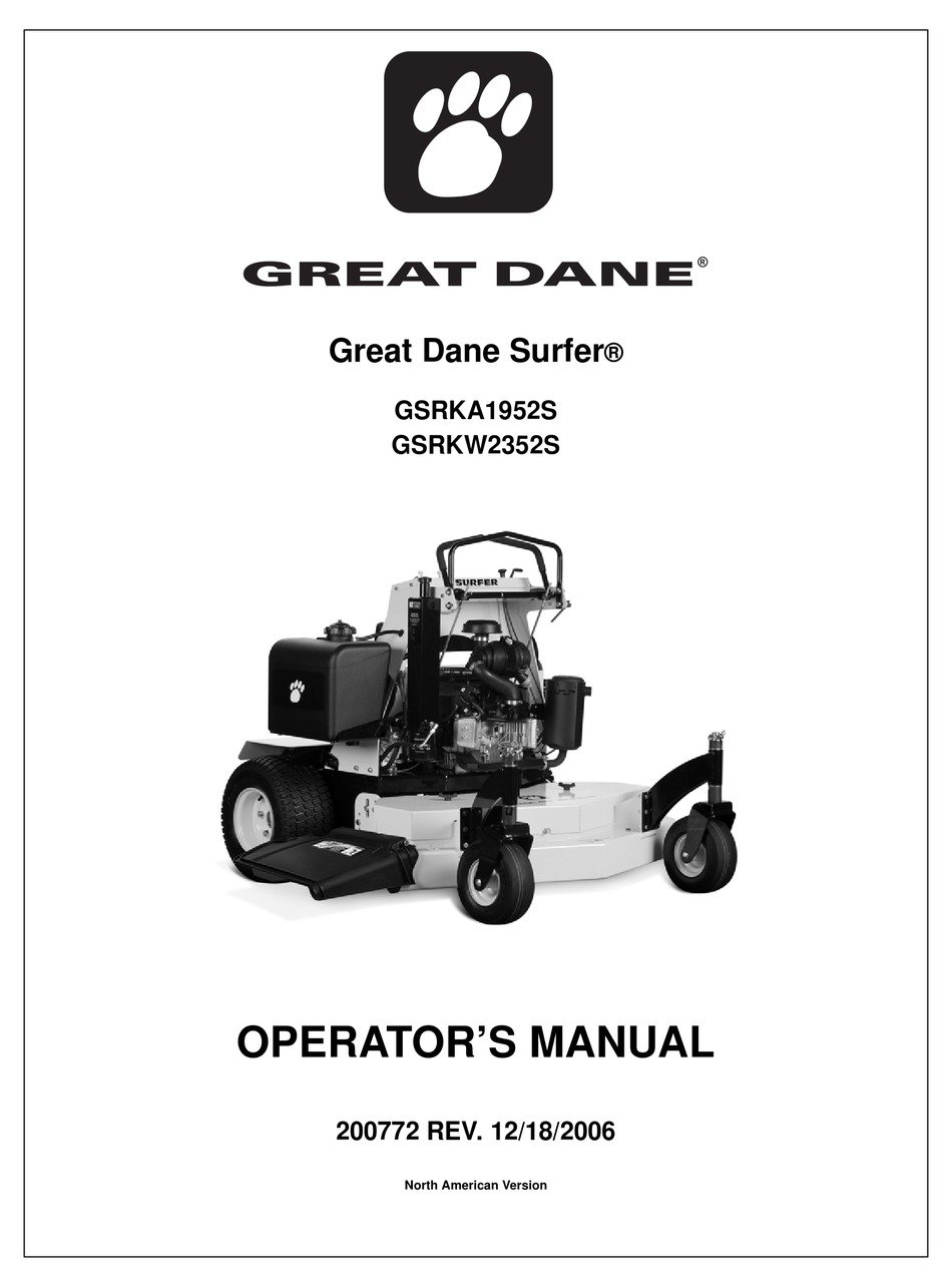 Great Dane Surfer Gsrka1952s Operator S Manual Pdf Download Manualslib